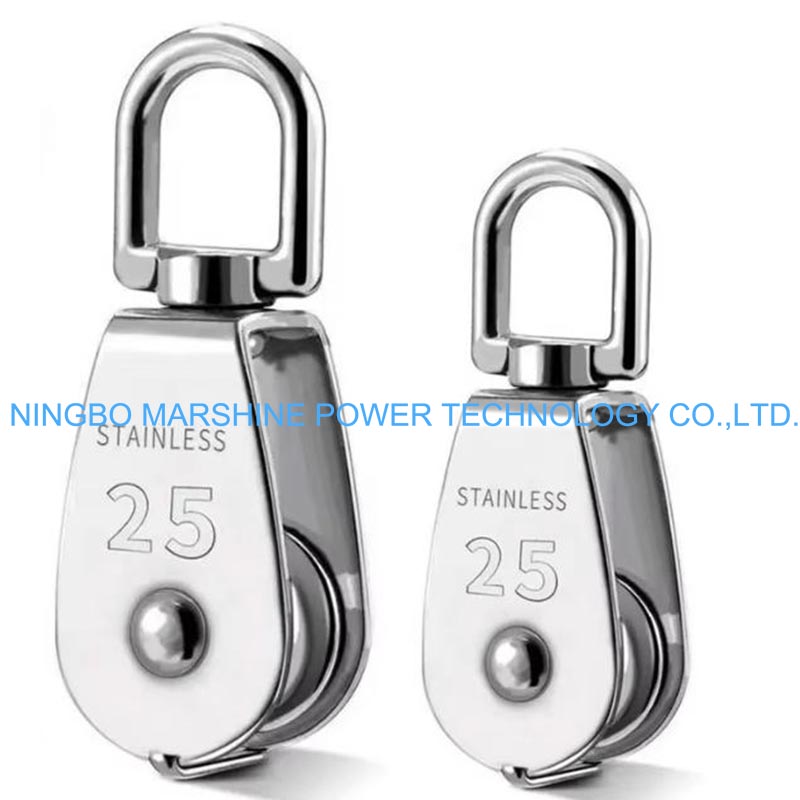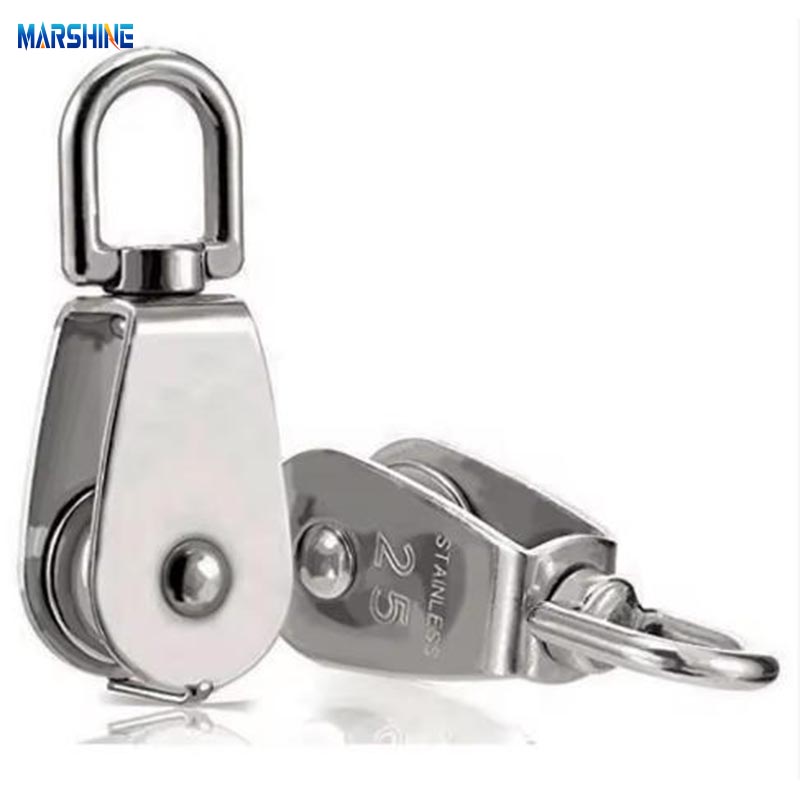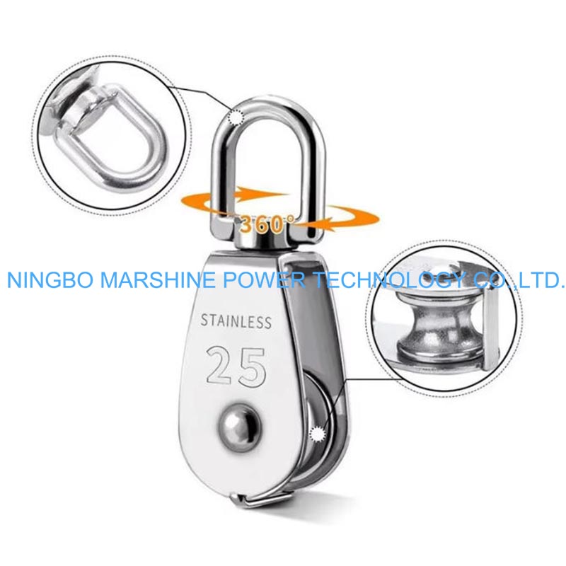 O design de polia única e o diâmetro otimizado garantem a operação suave da polia de cabo de arame da corrente do gancho de guindaste da Marshine.