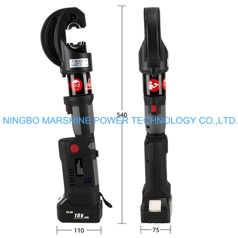 O alicate de crimpagem hidráulico alimentado por bateria de lítio de cabo reto MARSHINE ES-400B é uma ferramenta de crimpagem elétrica de cabo reto que pode lidar com cabos de cobre 400 mm²/alumínio 300 mm². Nenhum cabo projetado para terminação de cabo eficiente e confiável em ambiente profissional. Equipado com uma bateria de lítio de alta energia, este crimpador hidráulico de tipo aberto gera uma força poderosa e estável, tornando-o uma solução ideal para uso em campo para crimpagem de vários tipos de terminais de cabos e conectores sem qualquer preocupação com a fonte de energia. Sua alça reta e construção balanceada permitem que ele seja confortável para uso em áreas estreitas ou por períodos prolongados, o que o torna adequado para todos os eletricistas, instaladores e profissionais de manutenção que precisam de crimpagens precisas e de alto nível no campo ou na oficina.