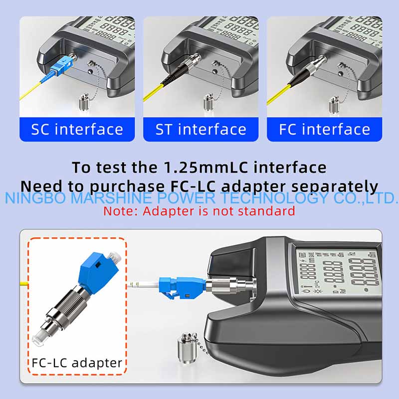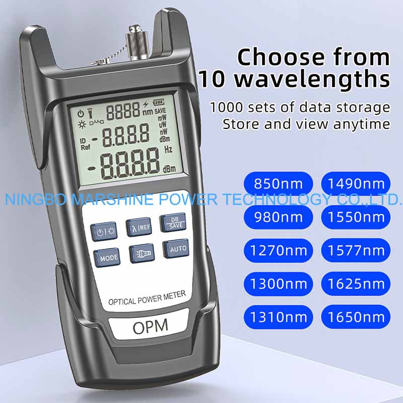 O testador OPM do medidor de potência da ferramenta de solução de problemas de fibra óptica MARSHINE pode ser usado para testar em todos os comprimentos de onda ópticos padrão da rede de fibra (por exemplo, 850nm, 1310nm, 1490nm e 1550nm), aplicável a multimodo e modo único.