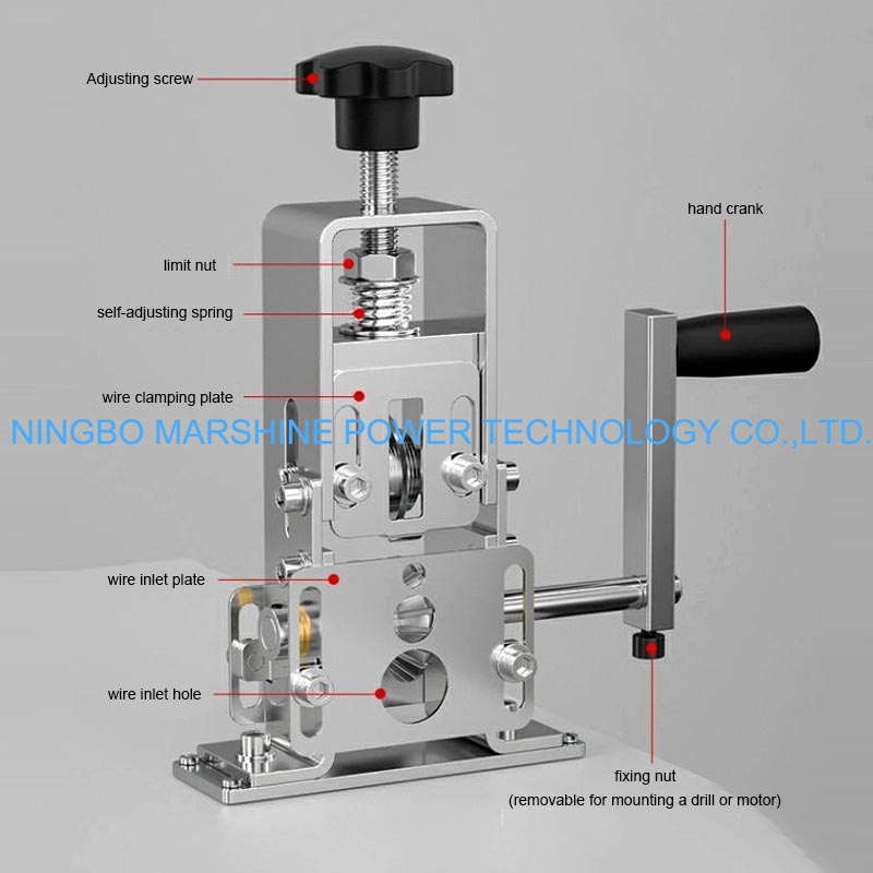 Esta máquina descascadora de fios portátil com estrutura de aço com manivela MARSHINE pode ser usada para remover o isolamento de fios de sucata para obter material de cobre valioso.
