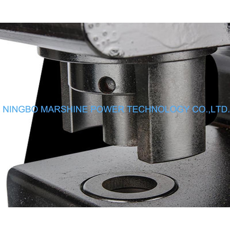 Foi projetado com profundidade de garganta de 85 mm, o que pode facilitar o acesso aos perfis estruturais e às pilhas de barramentos. A máquina pesa aproximadamente 82 kg, o que a torna portátil o suficiente para implantação no local, mas robusta e durável o suficiente para o trabalho industrial. O punção hidráulico para serviço pesado MARSHINE com bomba hidráulica elétrica vem com uma bomba hidráulica elétrica de 1,5 kW que pode fornecer o fluxo de óleo de alta pressão necessário para as operações de puncionamento.