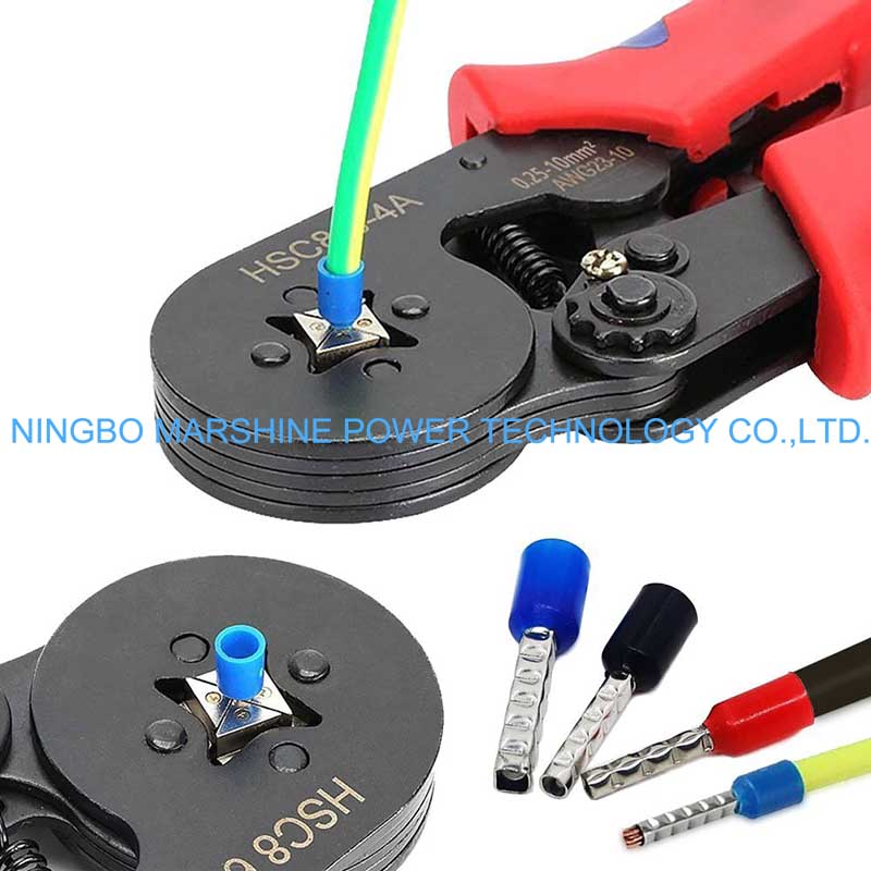 Você está pronto para crimpar. Você pode teralicate de crimpagem ou alicate combinado com ranhura de crimpagem. Essas ferramentas são principalmente para outros conectores. Eles não são ideais para tampas de ponteira. Alicates comuns são ainda menos adequados.Eles criam cargas pontuais e planos aleatórios. Esta não é a deformação projetada necessária para uma interface estanque a gases.
