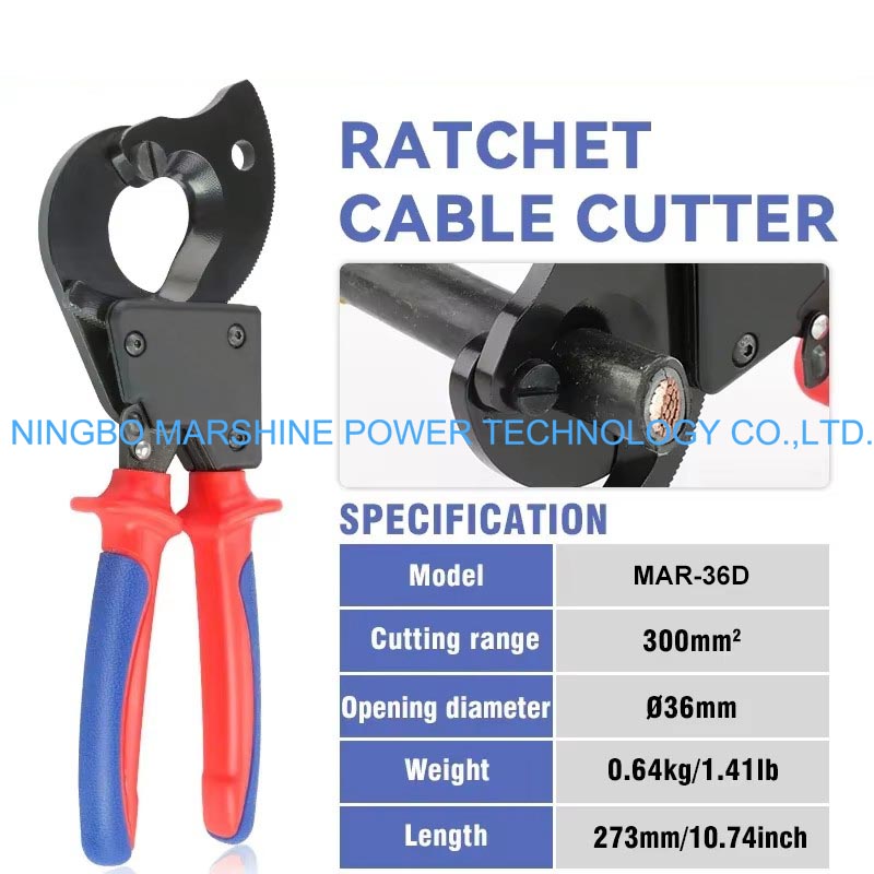 Nosso cortador de cabo com borda polida afiada tipo catraca MARSHINE pode ser amplamente utilizado no corte de cabos de alimentação blindados e outros cabos de alimentação de bitola pesada durante o trabalho de instalação ou reparo.