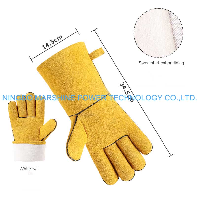 Com o revestimento interno de filme de alumínio, esta marechine espessada luvas de isolamento de calor por meio de couro pode oferecer melhor isolamento térmico, pode proteger as mãos do trabalhador da exposição de alta temperatura. Utilizamos o couro espessado de couro para fornecer mais durabilidade, pode fornecer aos trabalhadores resistência à punção e proteção de abrasão. E, interno, escolhemos o moletom macio de algodão, deixe esta luva para uso de longa data sem desconforto da mão. Com a manga estendida para proteger os pulsos e antebraços de faíscas, calor e detritos, essa luva pode lidar com ambientes de construção mais complexos. Também aplicamos as camadas extras em áreas de alto desgaste para melhorar a aderência e, com esse design, essa luva pode fornecer um uso mais longo.